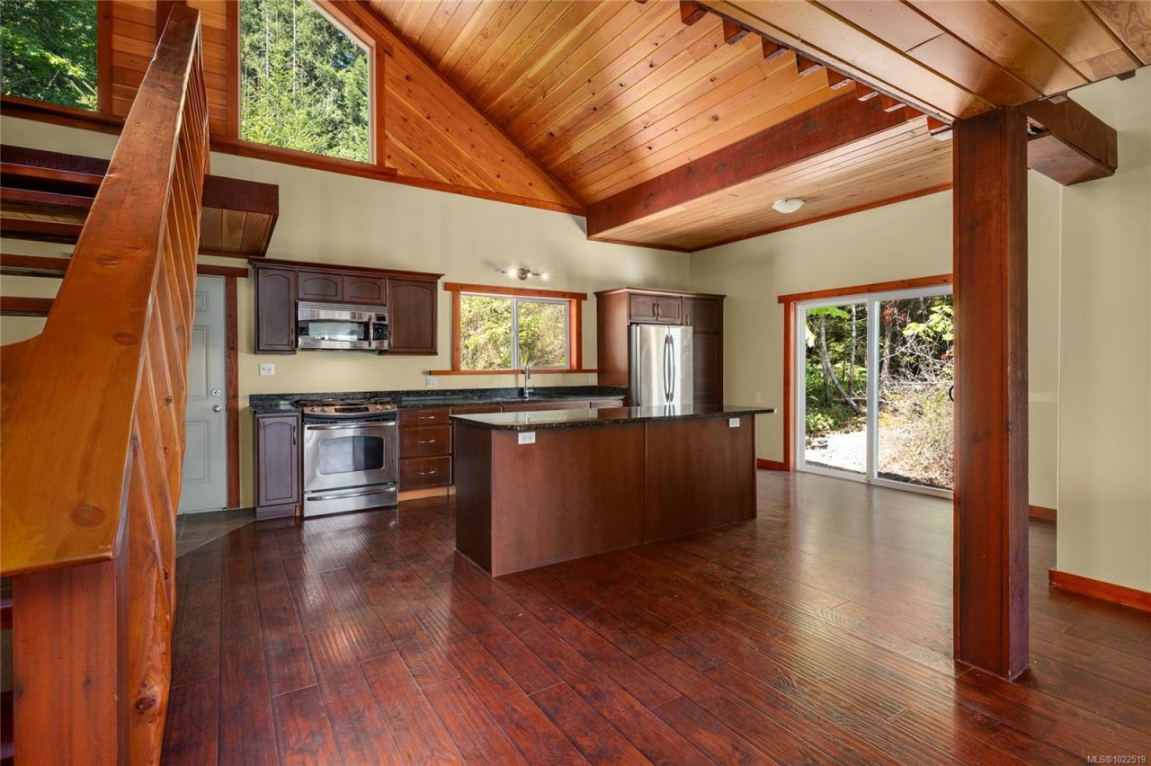 Built in 2011, this 2-bedroom home seamlessly combines natural warmth with modern design. Highlights include vaulted ceilings, natural wood accents, a striking open staircase, a cozy pellet stove, and an efficient heat pump. The kitchen features granite countertops, stainless steel appliances, and an oversized island. The main 5-piece bath offers tile flooring and dual vessel sinks, while the upper-level loft serves as a spacious primary suite with a 3-piece ensuite and French doors opening to a private balcony. Situated on 1 acre with zoning for two homes, this property invites your vision and finishing touches to make it truly your own...read more