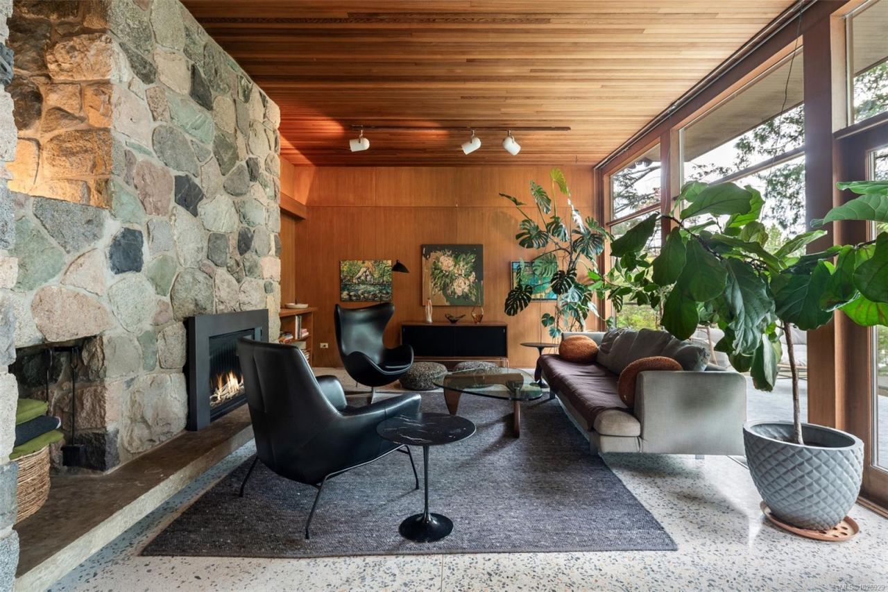 1955 REMASTERED MID CENTURY MODERN ICONDesigned by legendary Harold Wong, this architectural showpiece offers a rare chance to live inside an artful masterpiece. Mahogany walls-interior & exterior, yellow cedar ceilings, concrete terrazzo floors, concrete soft finished floors, floor-to-ceiling wood framed windows-bringing the deep drama. BC stone fireplace crafted with local stone. Both kitchens boast solid maple cabinet boxes, eco-wood doors, corian counter tops and modern linear hardware adding a crisp architectural contrast. A versatile 2 bedroom/2 bathroom in-law suite with separate laundry flows separately out of the lower level. Behind...read more
